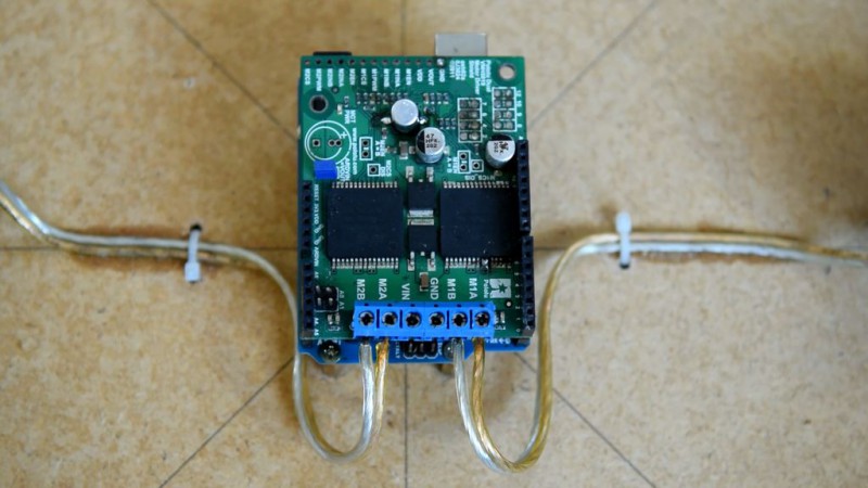 3.) Подключите провода левого двигателя к выводам M1A и M1B