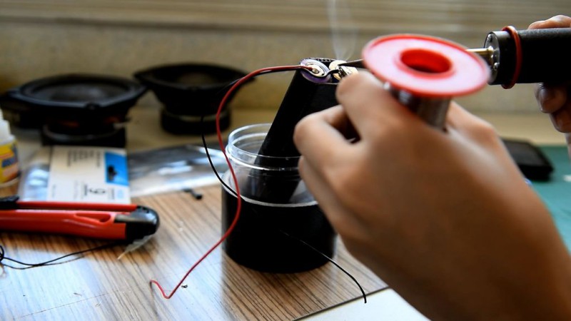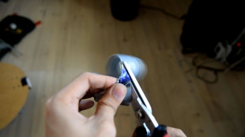 Для данного мозгопроекта используется 4-ячеечная батарея. Я просто спаял последовательно четыре обычные литий-ионные батареи типа 18650 (3,7 В, 2 000 мАч). Поскольку 18650 является перезаряжаемой батарей, то это самый простой способ создания мощного источника питания. Я изготовил два комплекта таких батарей и подключил их параллельно. Теперь мой источник питания на 14,4 В или 4 000 мАч!