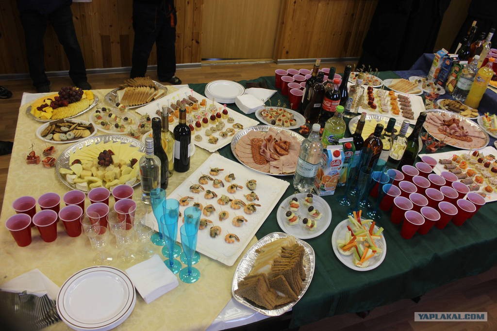 Меня лично повеселил фуршет с 21 креветкой аккуратно разложенными на тарелочке с расстоянием в 3 см между ними biggrin.gif и 4 один иноких канапэ на пластиковой тарелке. Зато хлеба не пожалели! lol.gif