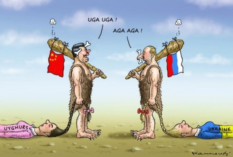 В этой карикатуре нужно ещё америкоса дорисовать, который тащит Ливию, Югославию, Ирак и т.д.