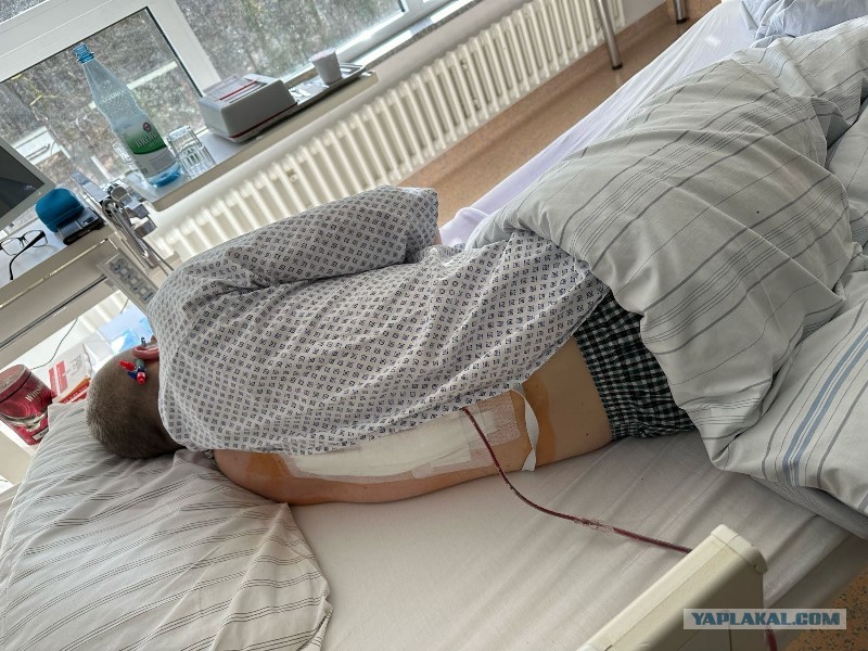 Я месяц назад тоже в больничке был-удалили межпозвоночный диск,завернули 4 болта в позвоночник .Кстати систему тоже в шею ставили-для удобства я её (в холостом состоянии) за ухо заправлял,а то при вертикальном положении она неприятно тянет "яремную вену" -вот фото где видно результат за ухом(день после операции)