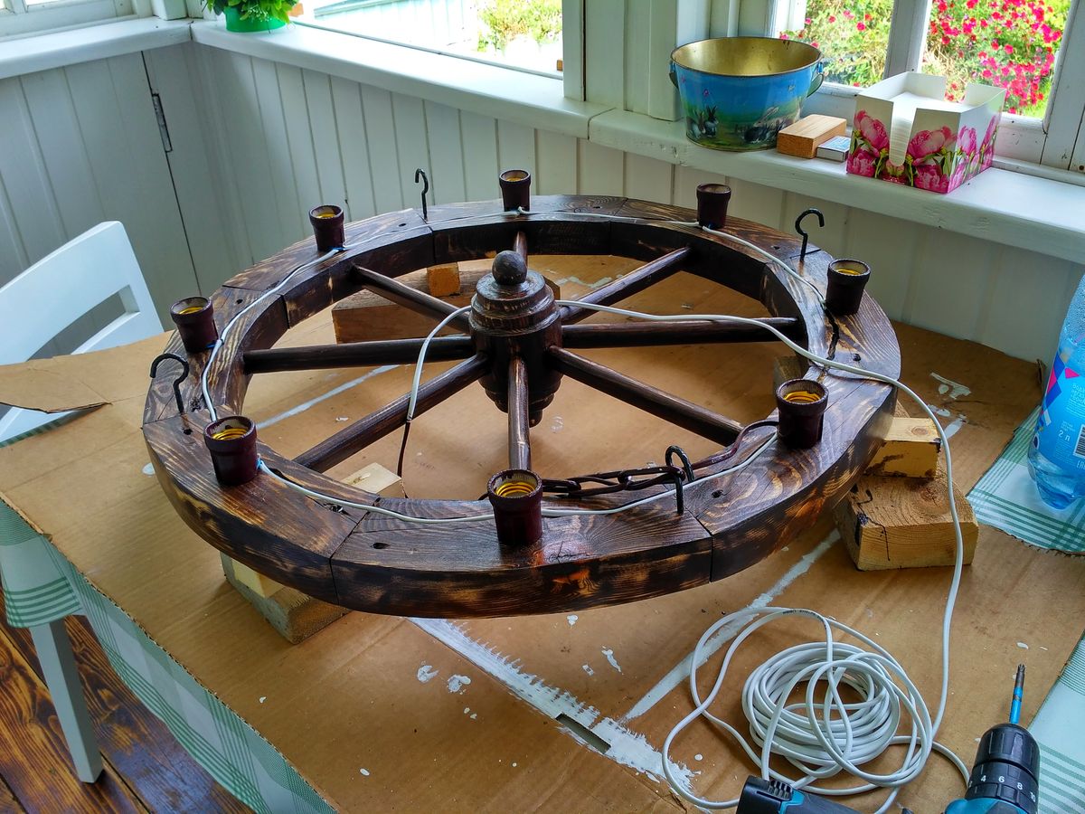 Предвосхищаю вопрос цены, спил 2000 рублец, патроны 500р, провод ретро рублей 300, драйвер рублей 200, лента, профиль, воск из остатков. Цепь рублей 200. Лампочки по 120р. Как то так, доклад окончен. Конструктивная критика принимается)