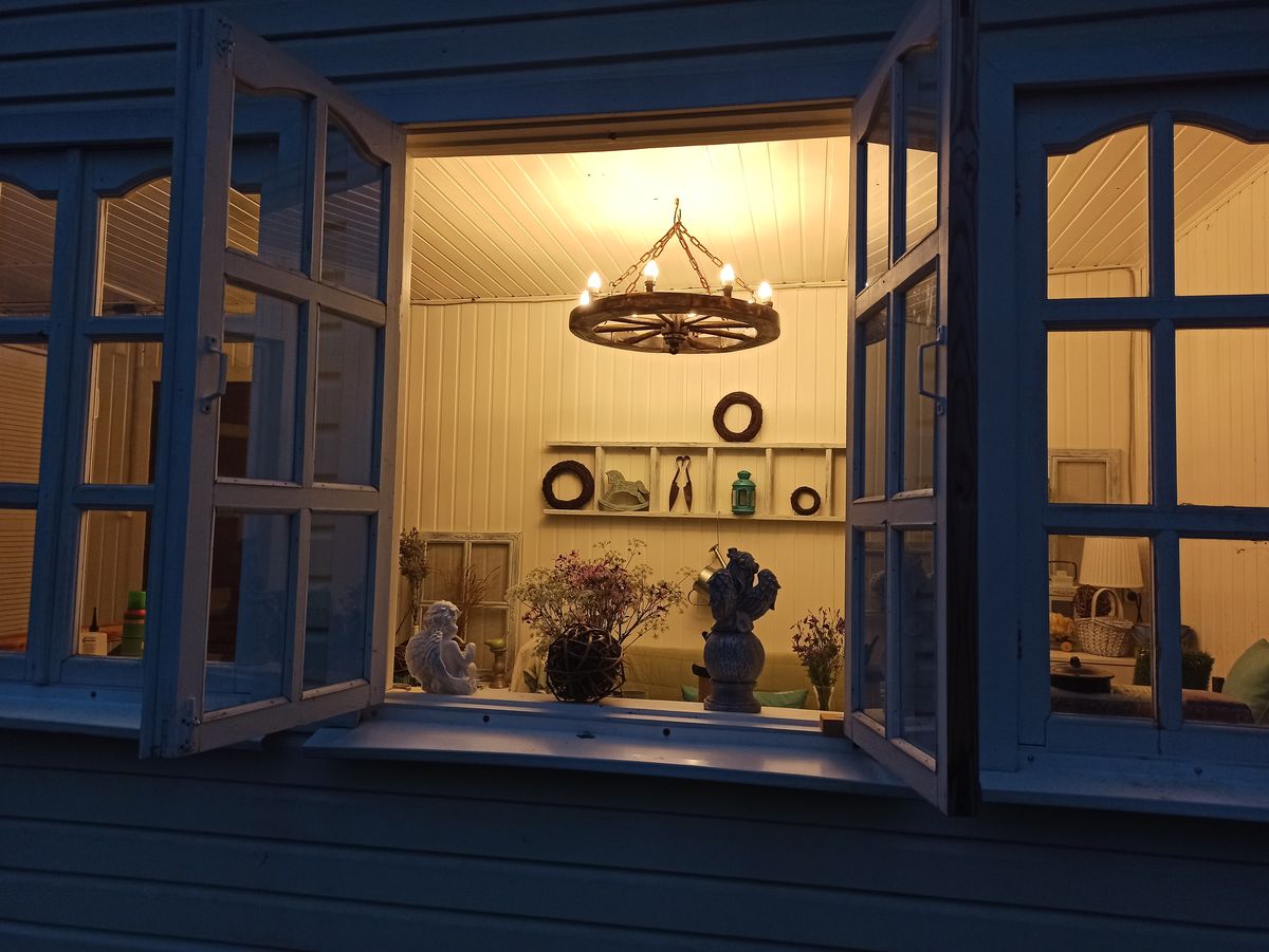 Колесо деревянное от телеги тоже можно было повесить, смотрелось бы думаю не хуже, а может и интереснее. Но за руки зелень.