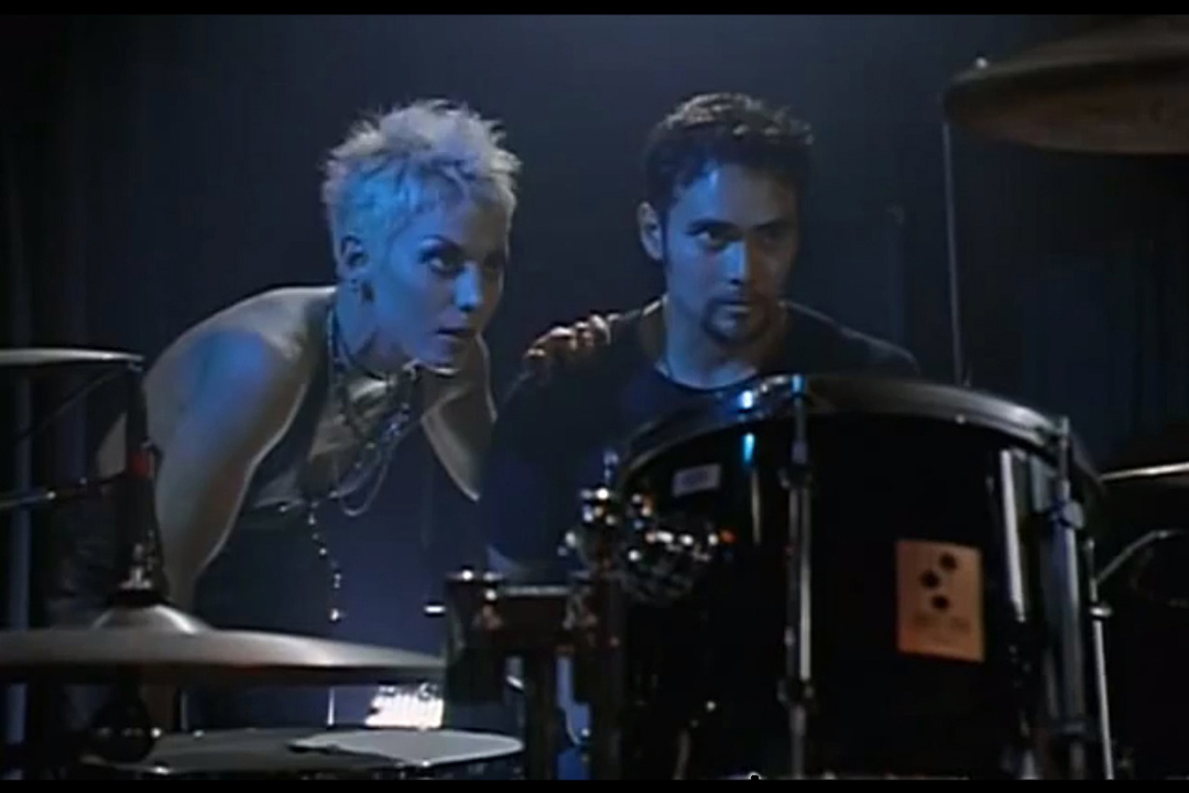 Джоан Джетт в фильме «Буги бой» (Boogie Boy, 1998). Кино, конечно, на "троечку", но эпизод "Есть ли в зале барабанщик" шедеврален. Дакаскос отбарабанил на "пятёрку"!