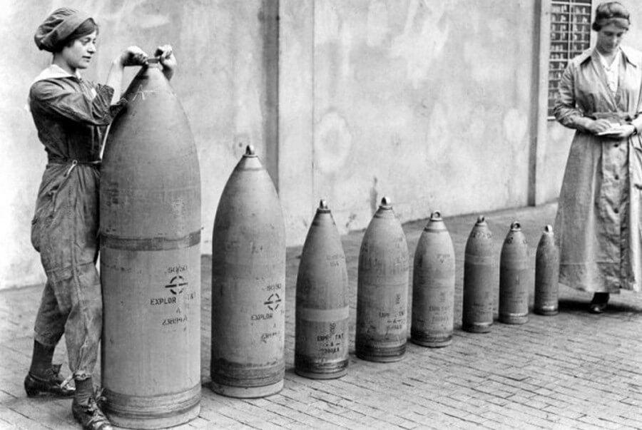 Женщины работают с боеприпасами во время Первой мировой войны, 1917 год