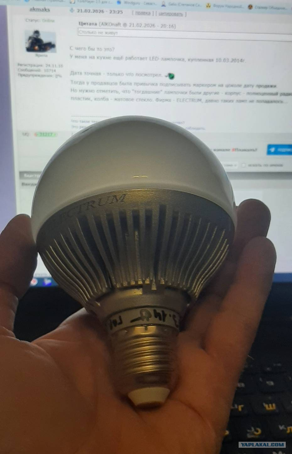 Но нужно отметить, что "тогдашние" лампочки были другие - корпус - полноценный радиатор алюминиевый, а не пластик, колба - матовое стекло. Фирма - ELECTRUM, давно таких ламп не попадалось, живучие...