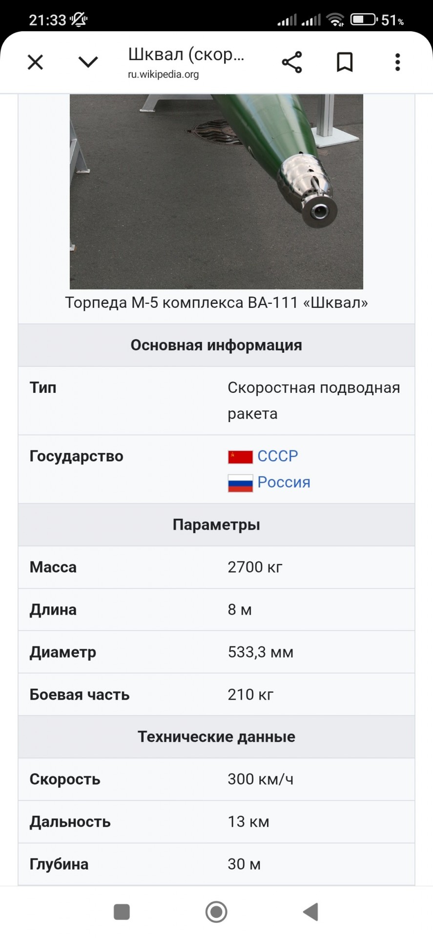 Торпеда Шквал ВА 111 скорость под водой 370 км /ч