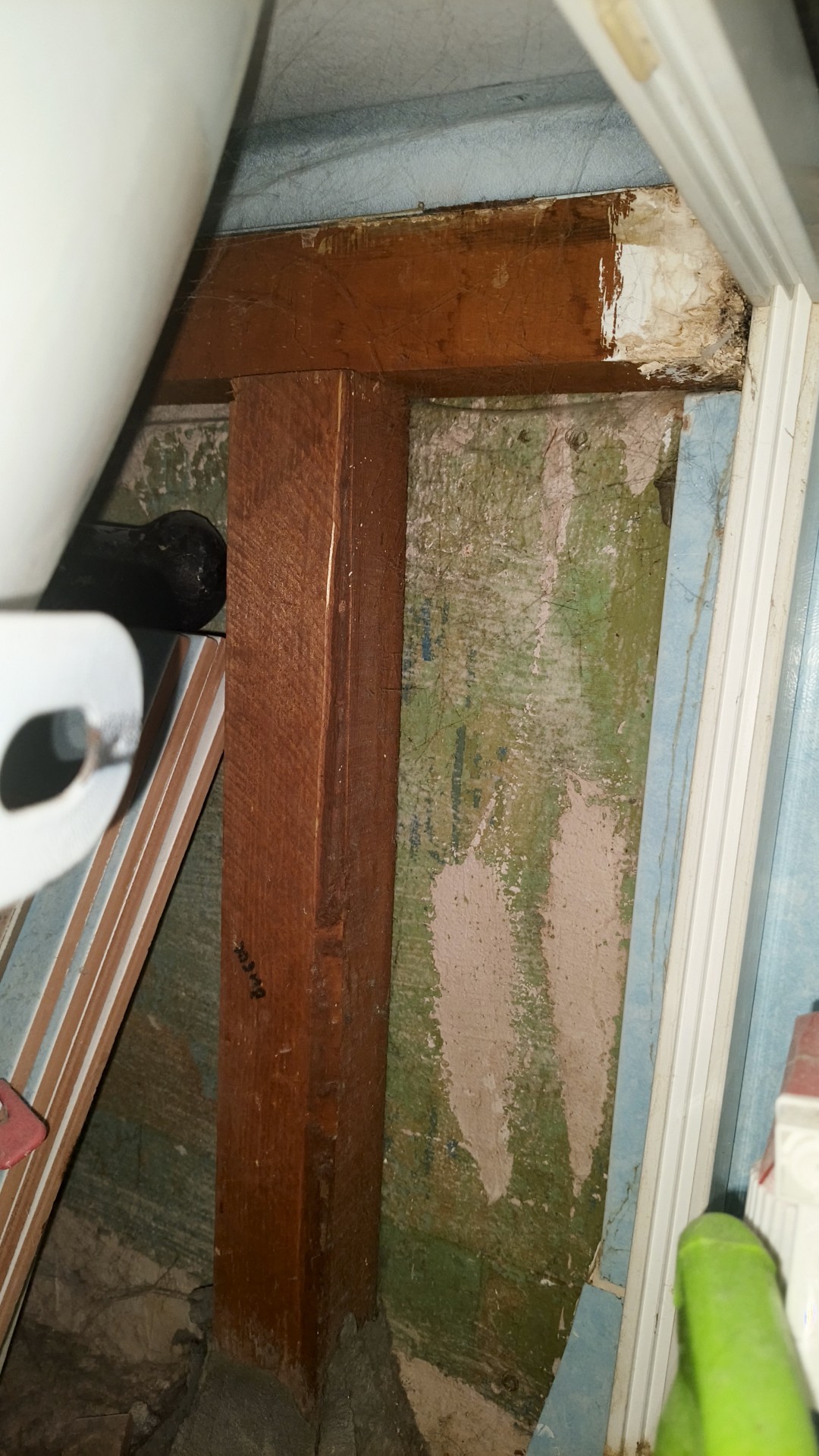 Сверху выпилил плитку под размер и на торец. Посадил на обычный плиточный клей. Уклон сделал слегка в сторону ванной. Фотку щас сделал, конструкции 17 лет стукнет в этом году. Пережила три потопа от соседей сверху, пару раз заливало пространство под ванной от стиралки. Гниения нет, древесина в норме.
