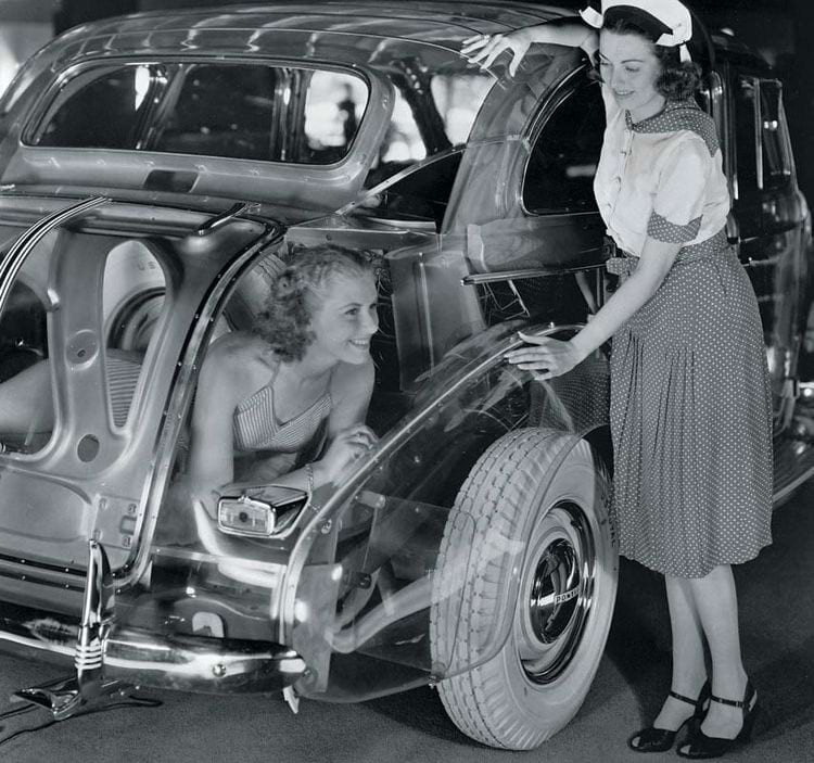 General Motors и химическая компания Rohm & Haas (разработавшая плексиглас в 1933 году) построили «автомобиль-призрак» стоимостью 25 000 долларов, чтобы подчеркнуть широкое использование небьющегося акрилового стекла, 1939 год