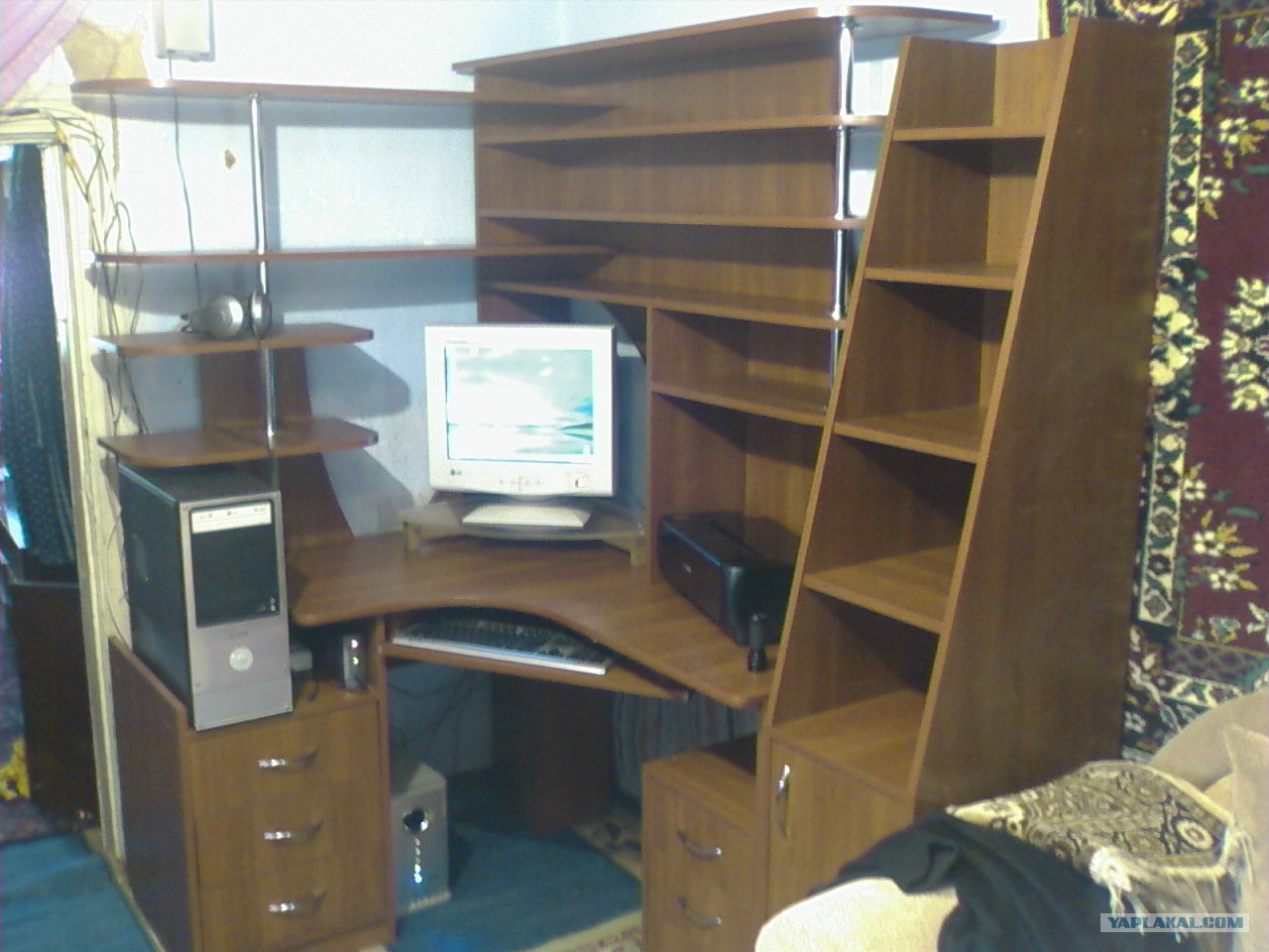 Вот ровно такой стол я за собой таскал лет 6 наверное. Очень удачный, имхо. Но только под один монитор. Он у меня дожил вот до такого состояния smile.gif) И стал катастрофически мал.