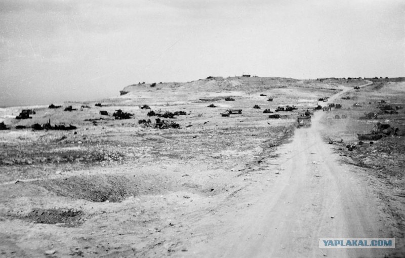 Разбитая техника на подступах к 35-й батарее Севастополя — последнему рубежу обороны, с которого по наступавшим немецким войскам велся огонь до последнего снаряда.