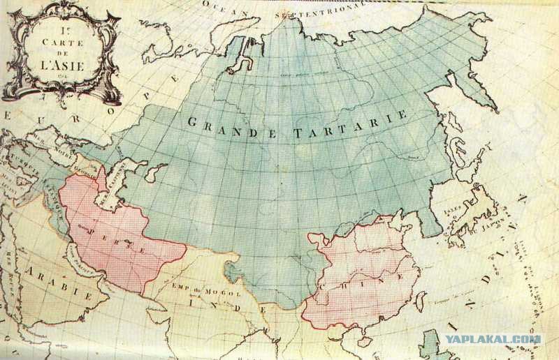 Мы разворачиваем карту 1754 года “I-e Carte de l’Asie”. Через всю огромную территорию Российской империи, - вплоть до Тихого Океана, включая Монголию, Дальний Восток и т. д., - идет надпись крупными буквами: GRANDE TARTARIE, то есть ВЕЛИКАЯ ТАТАРИЯ. А если вспомнить, что слово ВЕЛИКАЯ переводилось иностранцами иногда как МЕГАЛИОН = МОНГОЛИЯ, то и получаем МОНГОЛО-ТАТАРИЯ. Итак, ЕЩЕ В ВОСЕМНАДЦАТОМ ВЕКЕ Российскую Империю именовали также МОНГОЛО-ТАТАРИЕЙ.