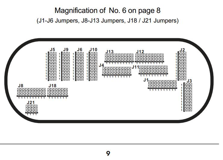 adjust the setting of J1--J6, J8--J14, J17, J18, and J21 Jumpers by