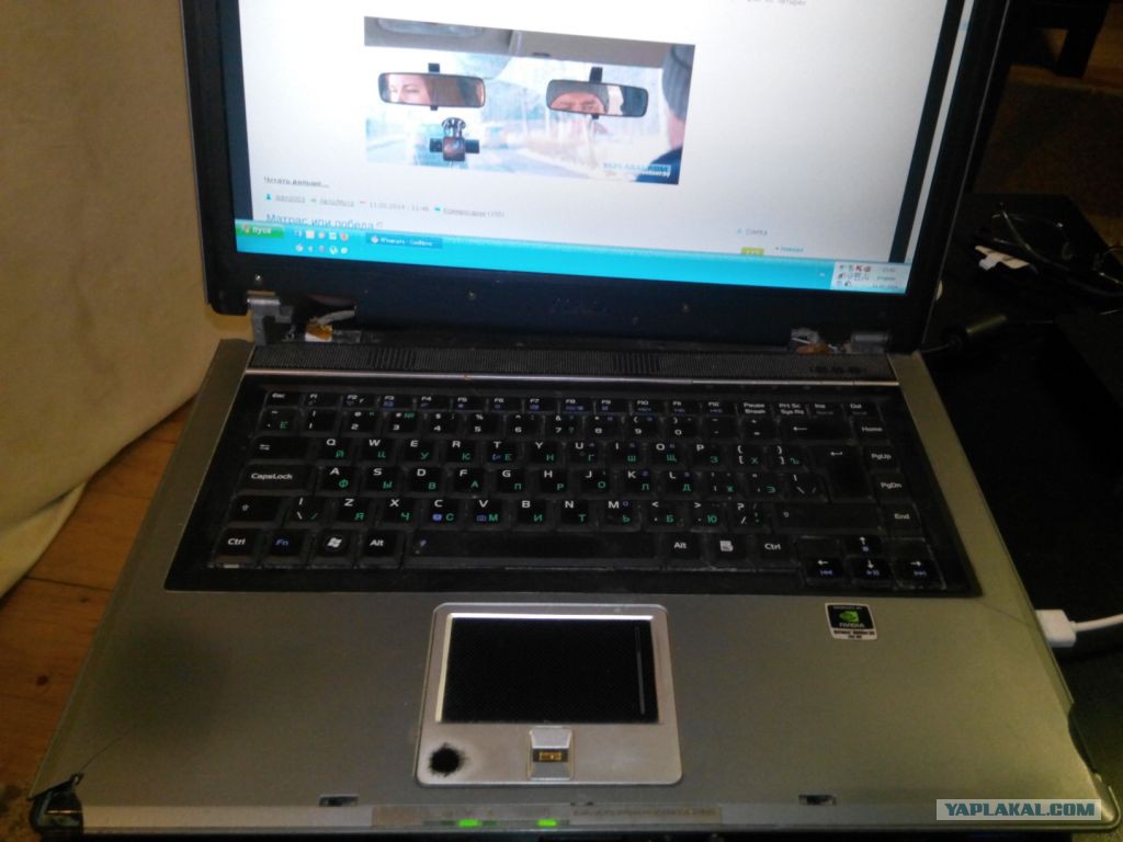 Asus F3 series. Корпус - говно. Мало, что петля слева сломала корпус, так спереди в районе тачпада, где нагрузки нет, корпус в трещинах. Владельцы этой серии подтвердят. Заказал с США ноутбук на запчасти, буду менять корпус, если конечно доберется до меня целым.