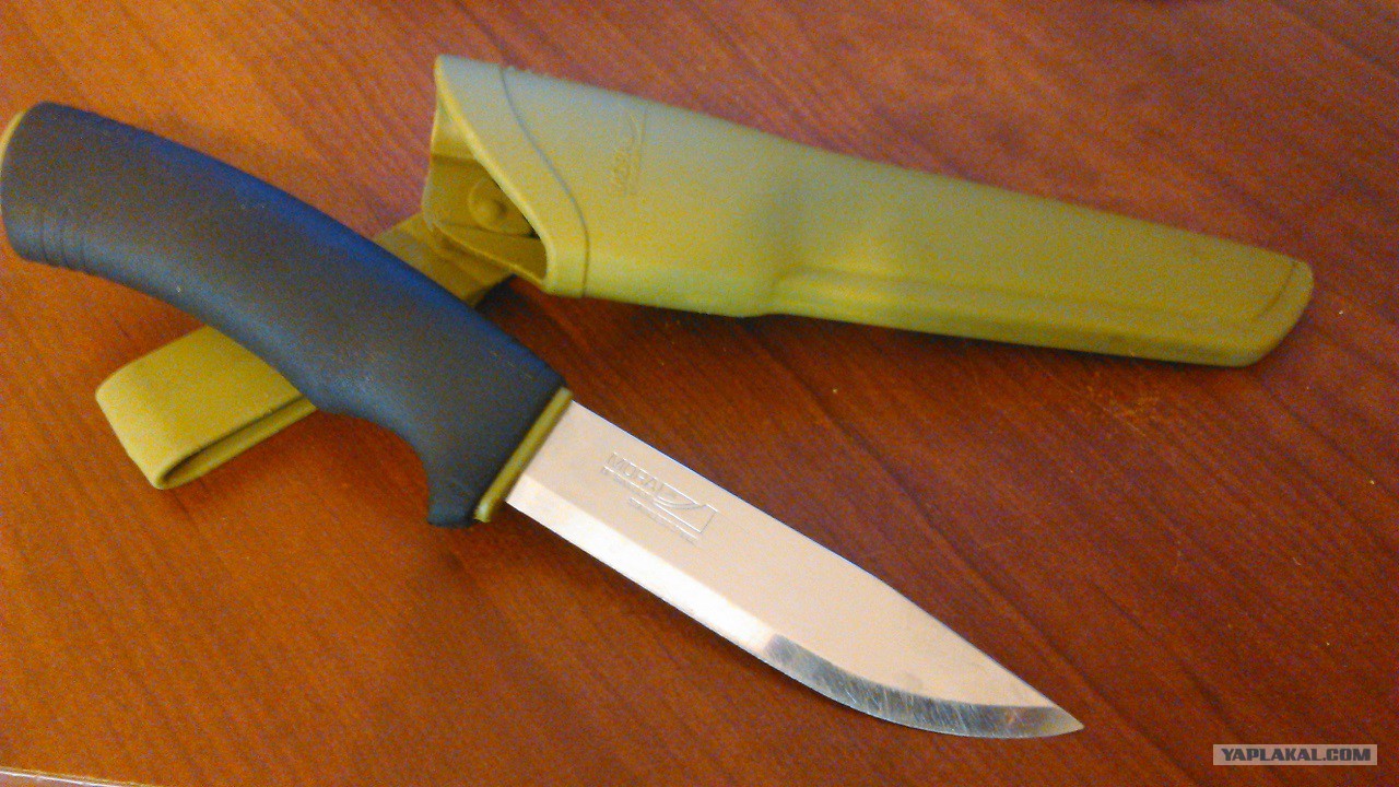 В машине лежит шведский утилитарный в пластиковых ножнах (как называется - не стал запоминать). Удобный и заточку держит хорошо.