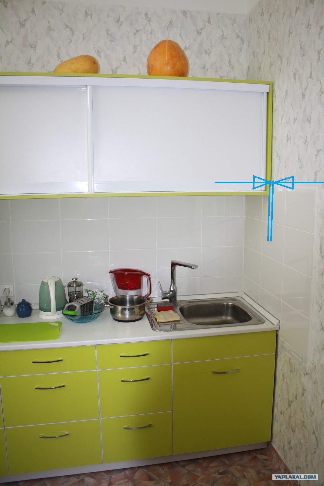 И, да, нижний шкаф тоже можно было вплотную к стене сделать.