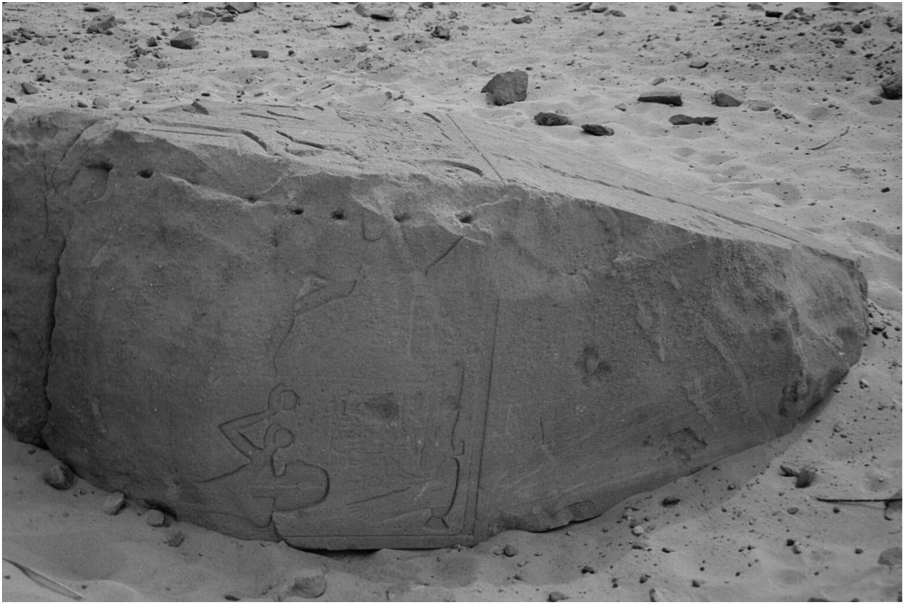 Любителям высоких технологий: разбитый кварцитовый обелиск Сети I в Гебель Гулаб. На обелиске отчетливые следы болгарки: