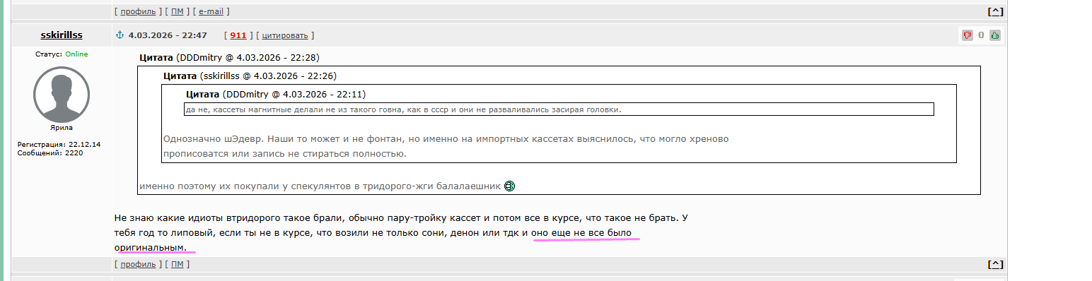 Так ты же приводил аргумент что импортные кассеты в ссср были неоригинальми?