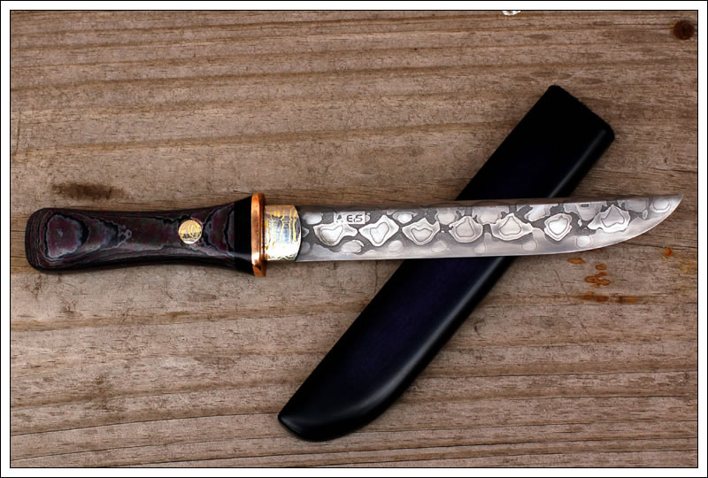 Кстати, нашел клинок из мокуме-гане. На обкладках - мокуме. Вот он (Архангельский, если не ошибаюсь):