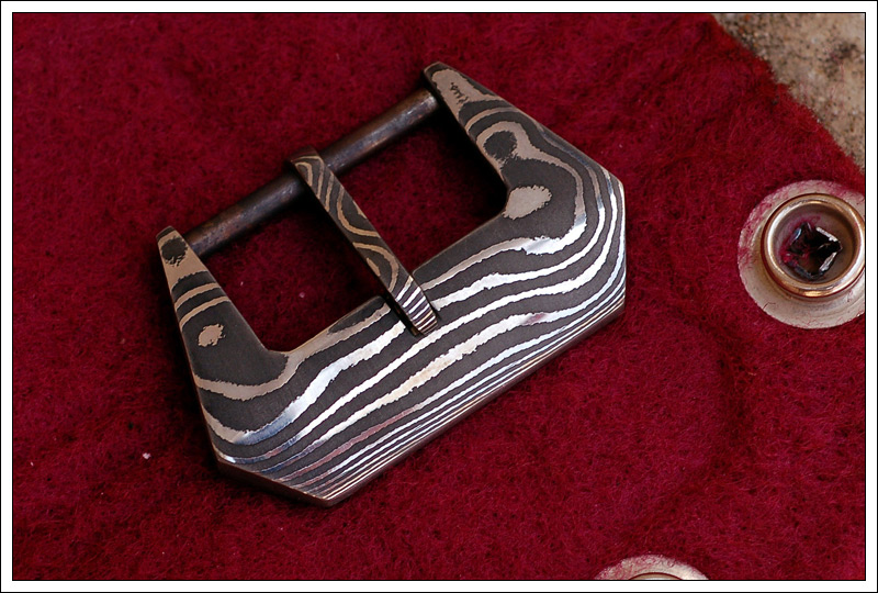 После окончательной обработки появляется на свет такой кусочек мокуме. Из него можно сделать больстер для ножа или пряжку на ремень.