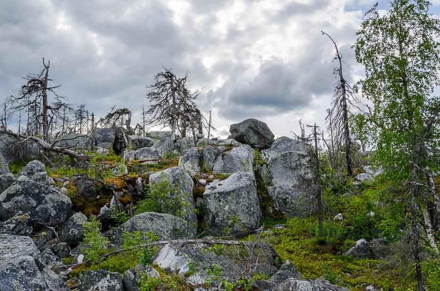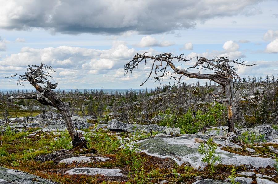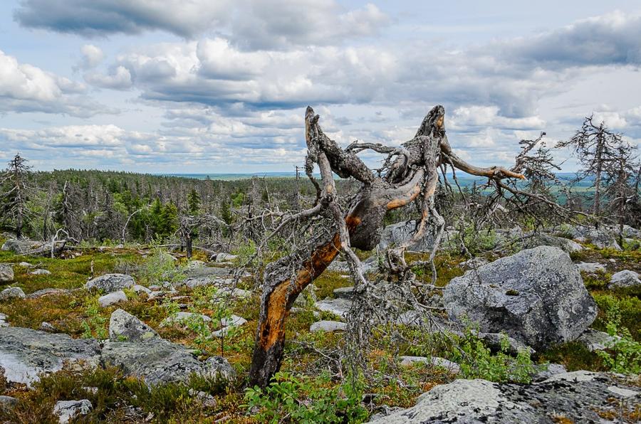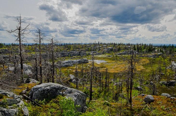 11. Чем выше поднимаемся, тем меньше растительности встречаем — только сухие скрученные деревья и мхи. Создается ощущение «мертвого» места.