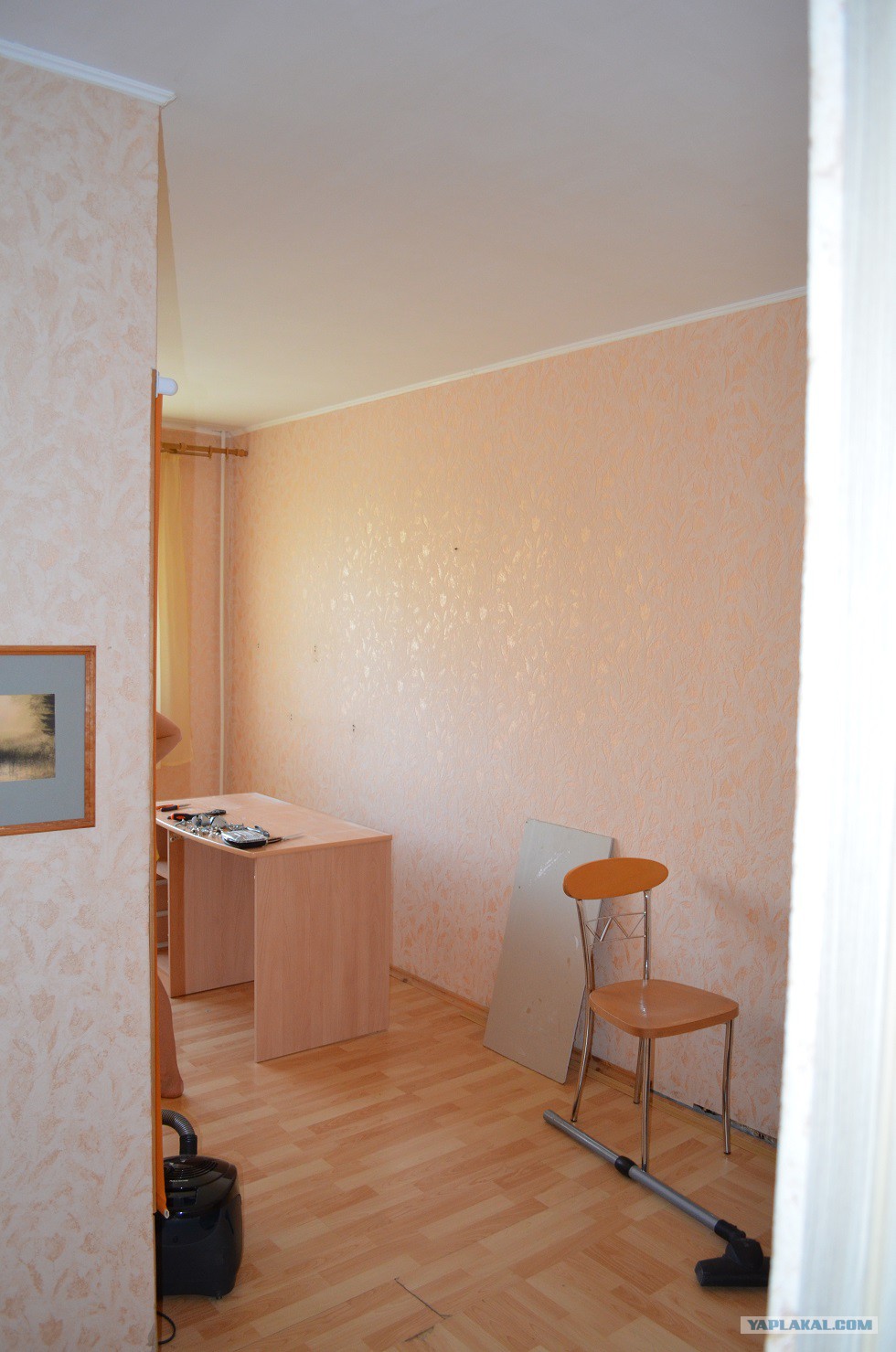 4. На фото за оранжевой шторкой ниша, выполняющая роль мини-кладовки, которая была сделана прошлым хозяином. Пользование ею было очень неудобным, т.к. дотянутся до дальней стенки было очень сложно. Решил ее разобрать и смастерить на этом месте шкаф.