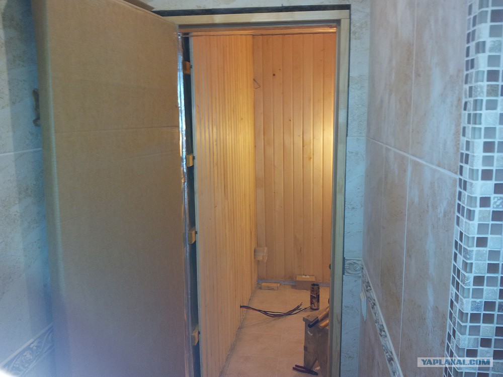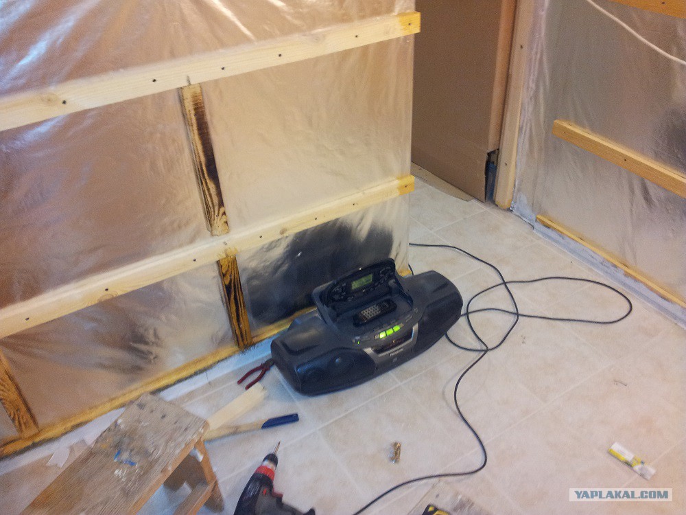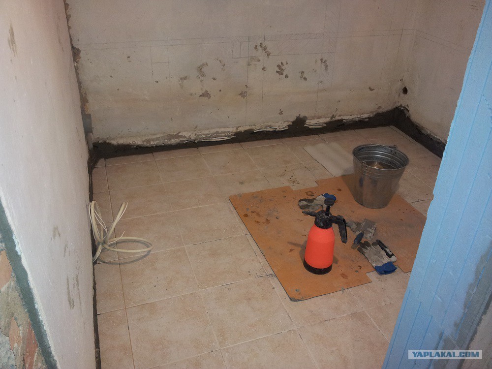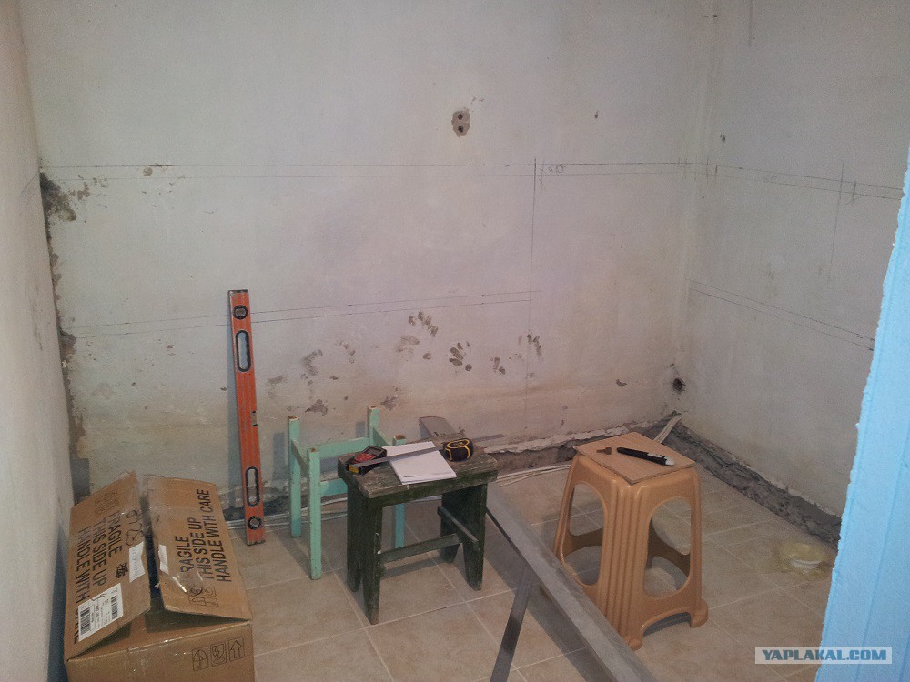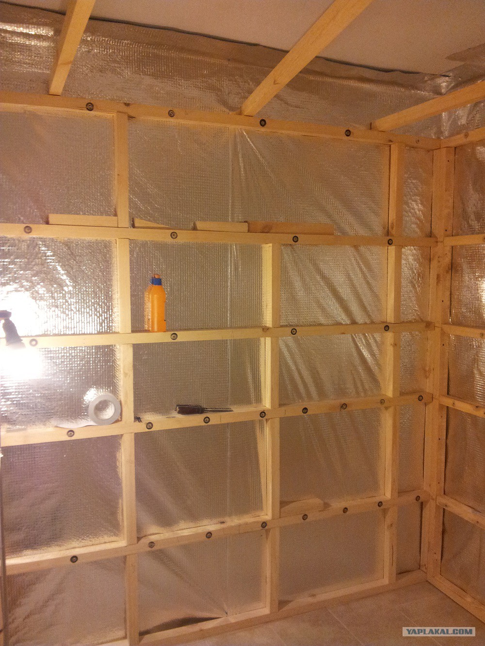 Делал все сам, один, в выходные и по вечерам. начало работы 16,12,2014. окончание 16,03,2015. непосредственно работы 32 дня, проверял по сделанным в конце дня фото. Имеем помещение цокольный этаж частного дома, 2м х 2,2м высота 2,4м, пол теплый, уложена плитка.