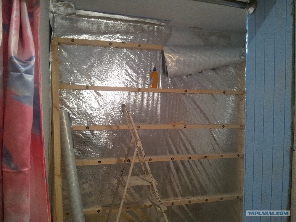 13. Оббиваю все фольгой для саун на бумажной основе.