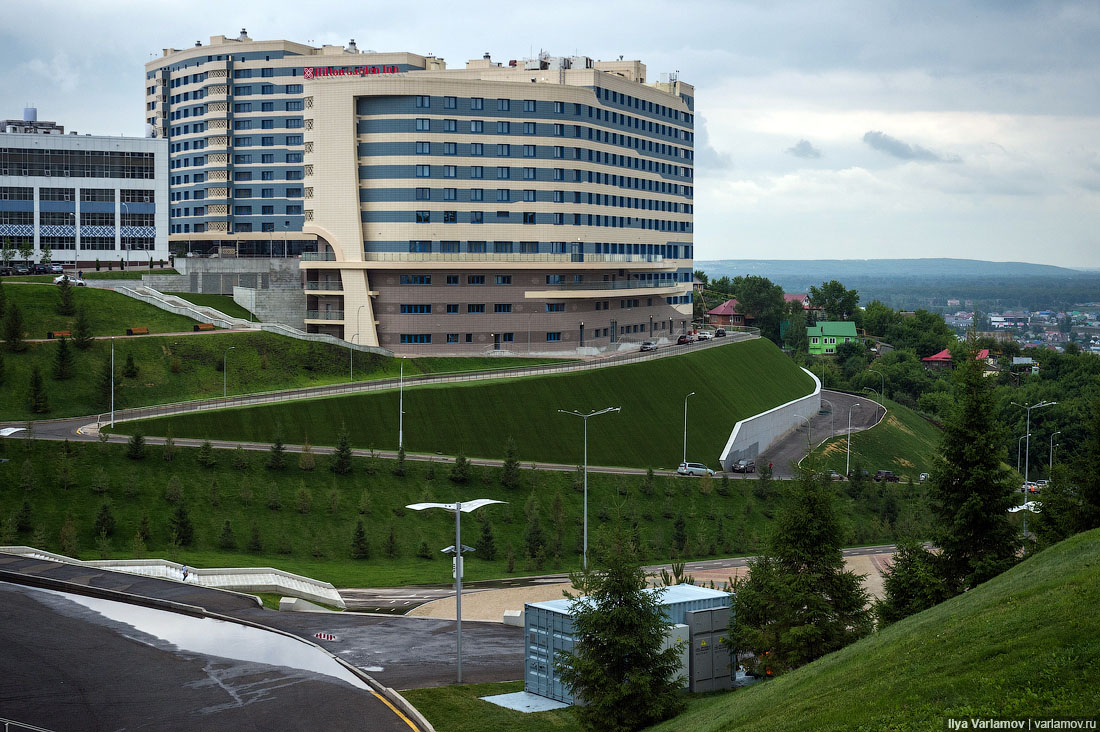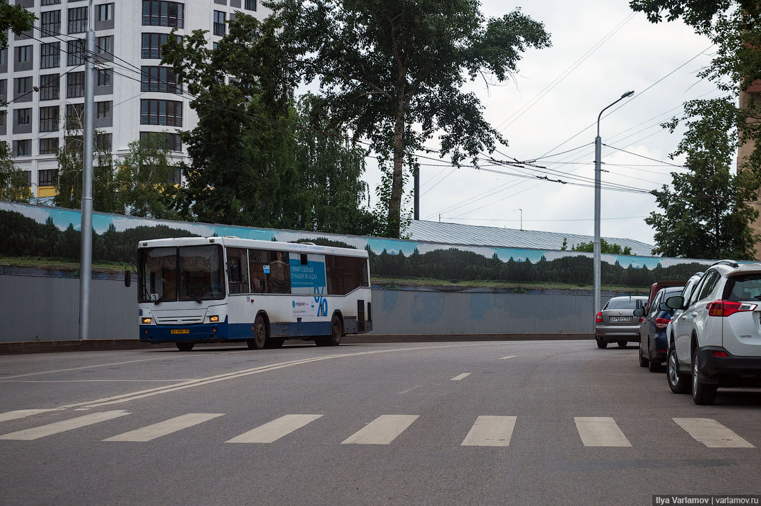 11. Стоит отметить, что уфимские власти мастерски научились подбирать картинки для своих заглушек. Иногда сразу и на распознать, что вдали не прекрасный газон, а забытый строительный вагончик.