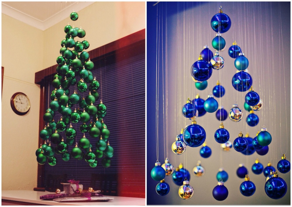 Подвесная ёлка из шаров одного цвета смотрится очень элегантно