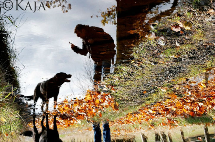 На фотографии — отражение Каи и любимца семьи черного лабрадора.