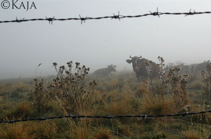 Кая же обратила внимание на колючую проволоку, которой огораживают территорию пастбища.