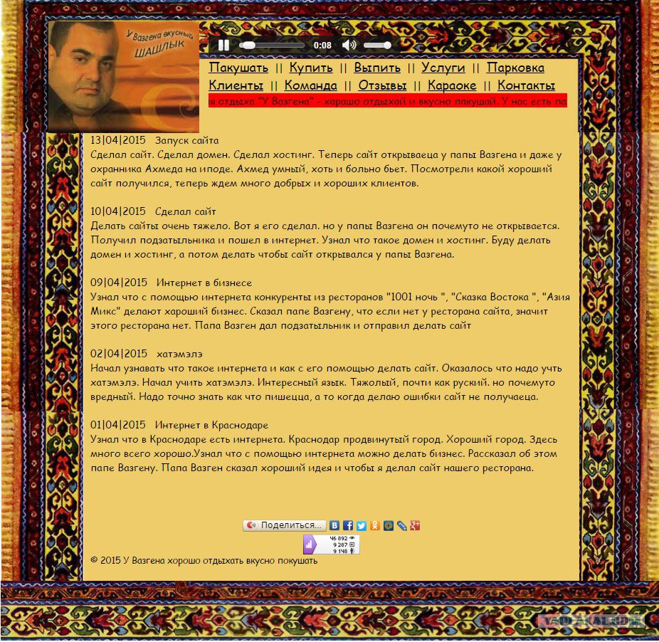 У Вазгена теперь вой сайт: с шашликом и кетчупом!