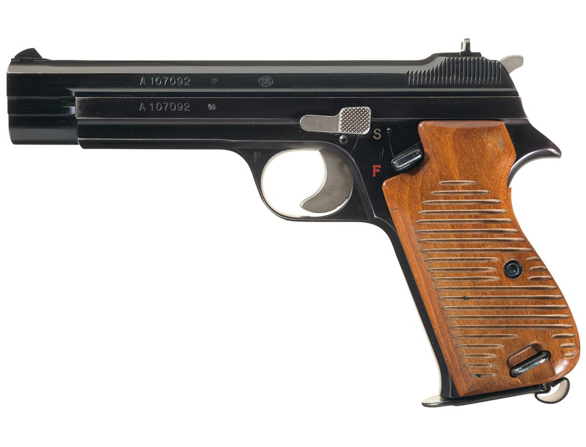 Будущий P210, швейцарская классика. Помимо пистолета под патрон 9x19, в комплект входит ствол под 7.65x22 и ствол с затвором под .22LR.
