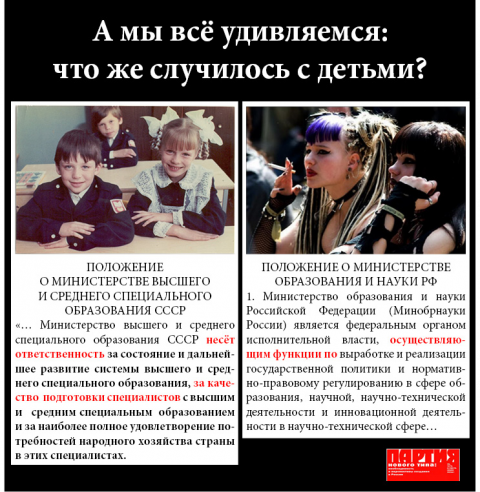 Кстати да. Вот в стартпосте пример лицемерия партийной агитки, в этот раз коммунякской: слева на фото обычное постановочное фото советских школьников 80х годов. Справа фото каких-то фриков. Не факт, что школьников, не факт, что в РФ. Так хули эти пидары партийные не уравняют фото? moderator.gif