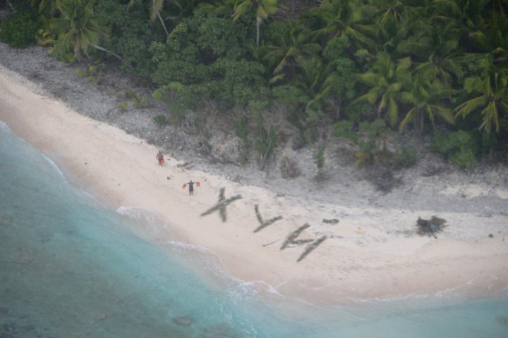 В этом спасателям помогла надпись, которую они выложили пальмовыми листьями.