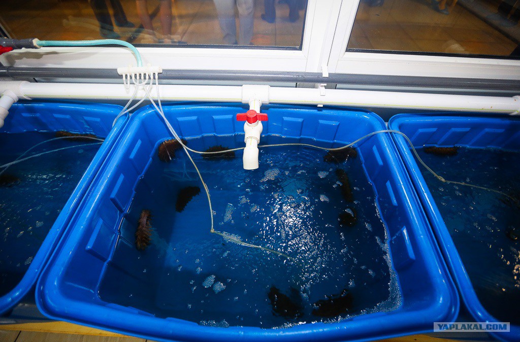 Георгий Ким, ректор Дальрыбвтуза, рассказывает о процессе выращивания трепанга.