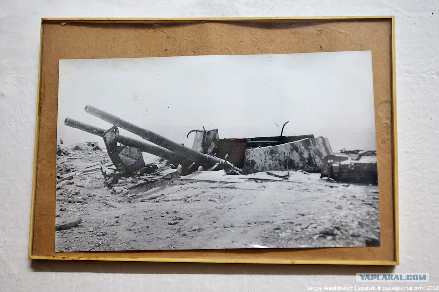 Когда защитники батареи доложили в Ставку Главнокомандования о том, что немцы бьют по батарее 610-мм снарядами, от попаданий которых трескается бетон, им поначалу не поверили. Пришлось приводить доказательства, сделав этот фотоснимок около неразорвавшегося снаряда из мортиры "Карл", попавшего в батарею.