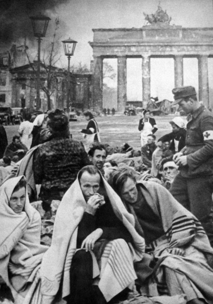 Немецкие военнопленные на улицах Берлина, захваченного советскими войсками.