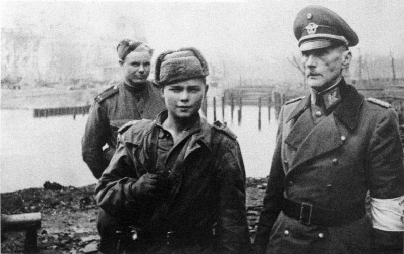 Советские бойцы и пленный начальник медицинской службы полиции Берлина Карл Эмиль Вробель.