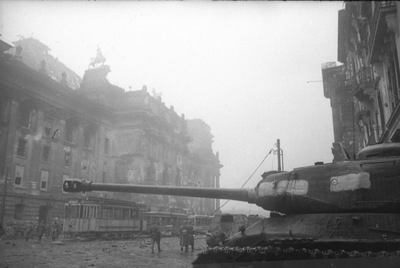 Тяжелый танк ИС-2 на фоне Рейхстага.
