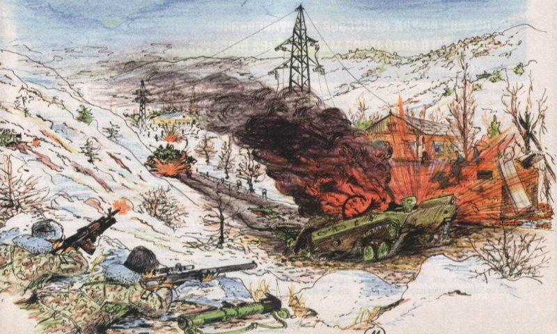 Фото: Засада в ущелье 2 января 1995 года (рис.А.Сухолесского)