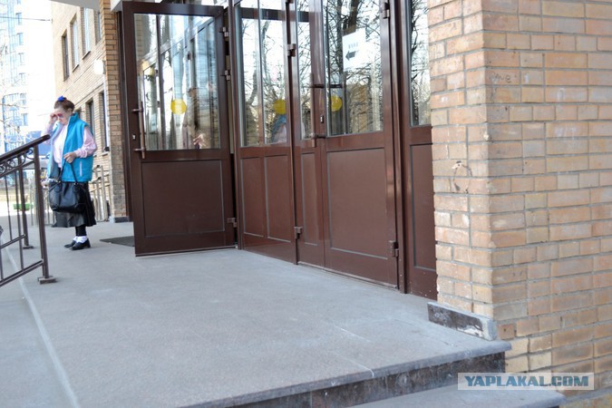 В предыдущей теме был уже вопрос: пандус где? Это же поликлиника? Не думаю, что туда ходят исключительно здоровые люди.