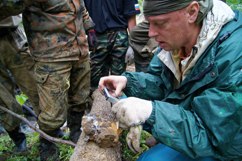 Осенью прошлого года мы начали раскопки истребителя, но заливавшая раскоп грязь и вода не позволили достичь результата. Работы были свернуты на межсезонье. В этот раз, мы смогли установить номера самолета, и вернуть имя летчика.
