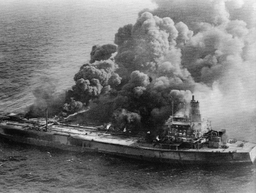 Столкновение двух танкеров — "Атлантик Экспресс" и "Эгеан Кэптен", 1979 год. На обоих танкерах возник пожар. На "Кэптене" его смогли потушить и отбуксировать его в порт. На "Атлантик Экспресс" нефть горела и взрывалась в открытом море 15 дней, потушить так и не удалось. Произошел разлив около 280 тысяч тонн нефти.