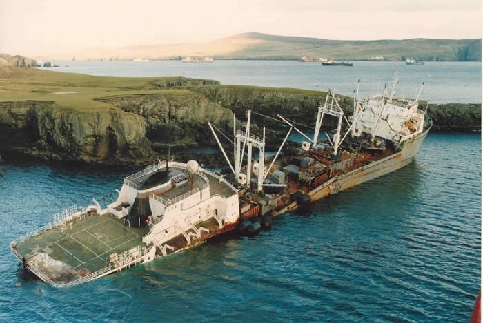 В дальнейшем, под действием штормовой погоды судно переломилось в средней части и кормовая часть затонула, произошло конструктивное разрушение корпуса.