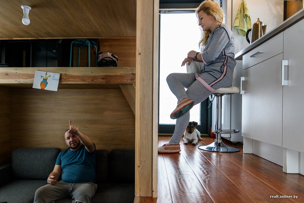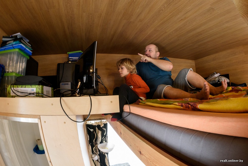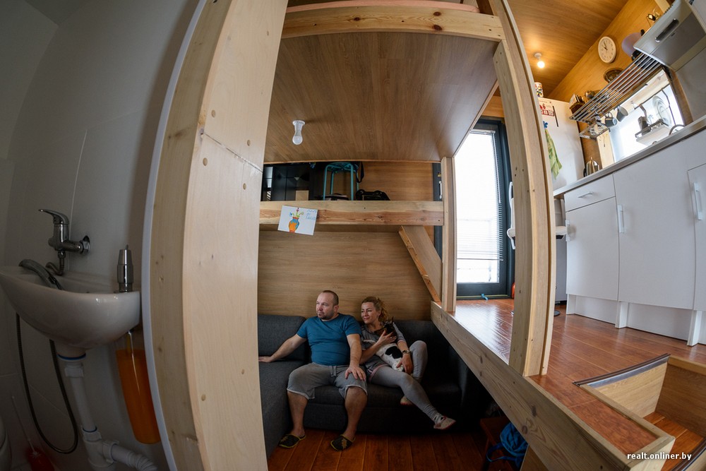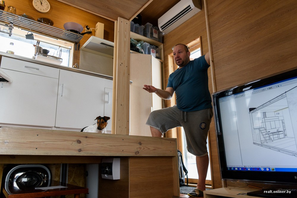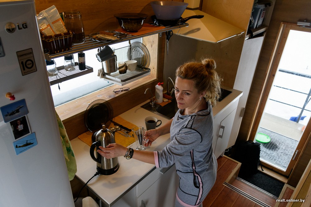 Толщина утеплителя позволяет жить в постройке круглый год. Отапливается помещение лишь кондиционером. За счет своей малой площади в дополнительных источниках отопления дом не нуждается, уверяет Виктор. Недавние крепкие морозы прошли бесследно. На случай аварийного отключения электроэнергии имеются баллон с газом и обогреватель.