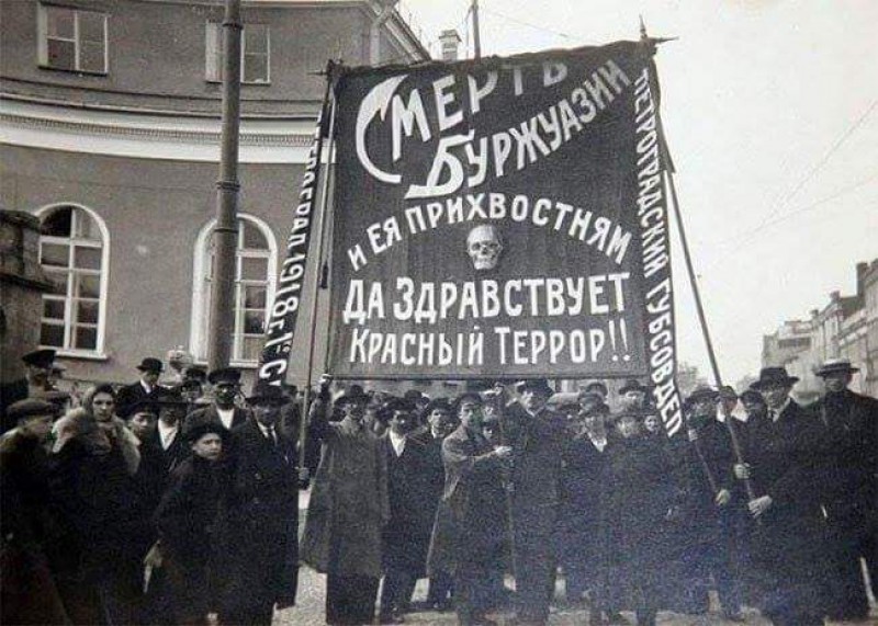 12. 5.09.1918г. СНК РСФСР введён декрет «О красном терроре», официально предоставляющий ВЧК право расстрела представителей «враждебных классов».