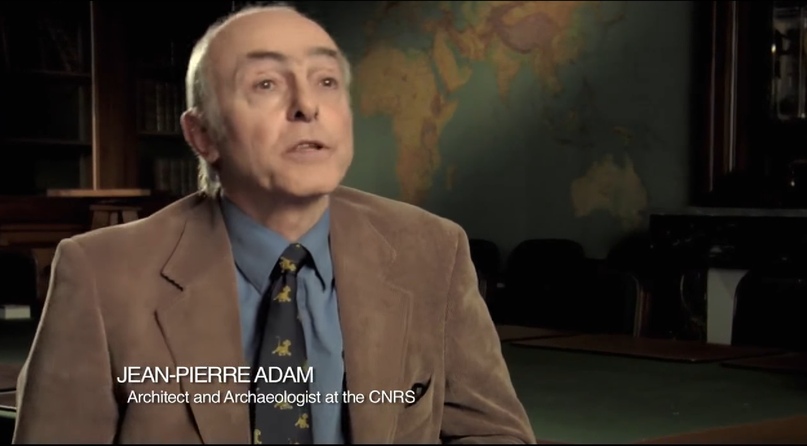 Только в данном случае – речь не о «РЕН-ТВ». Известный археолог – это специалист по древней архитектуре Жан-Пьер Адам, знакомый читателям АНТРОПОГЕНЕЗ.РУ по статье «О трилитоне из Баальбека. Транспортировка и постройка мегалитов».