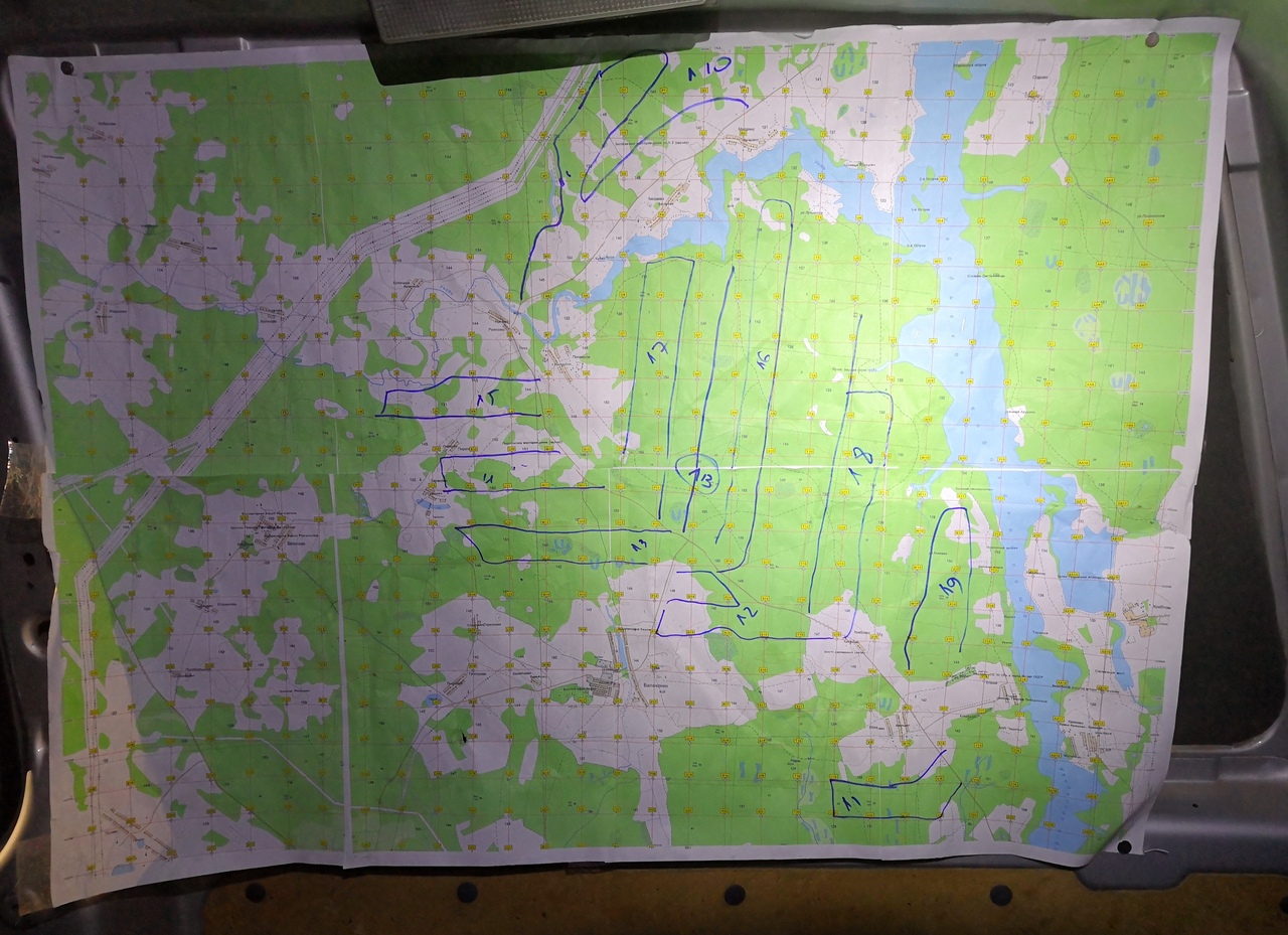 На стоянке перед Полётом посчитались, нас оказалось 43 человека, из них минимум 10 подготовленных старших - почти полная явка ветеранов отряда, плюс много новичков. Долго заливали все отрядные и личные навигаторы, параллельно планировали и рисовали задачи, на штабной карте и малых картах для групп.